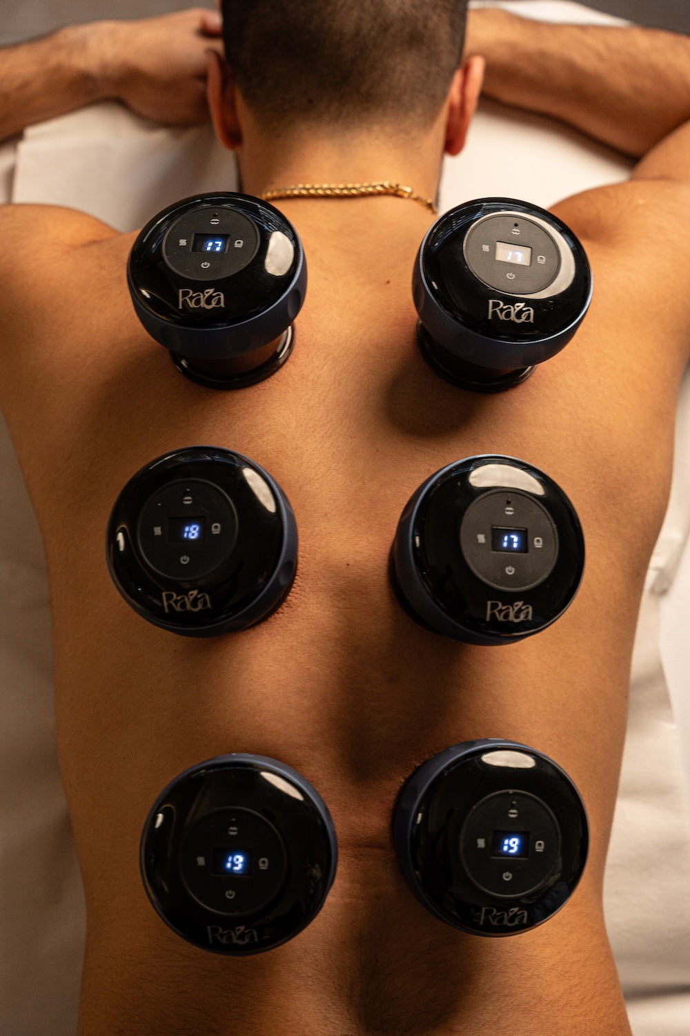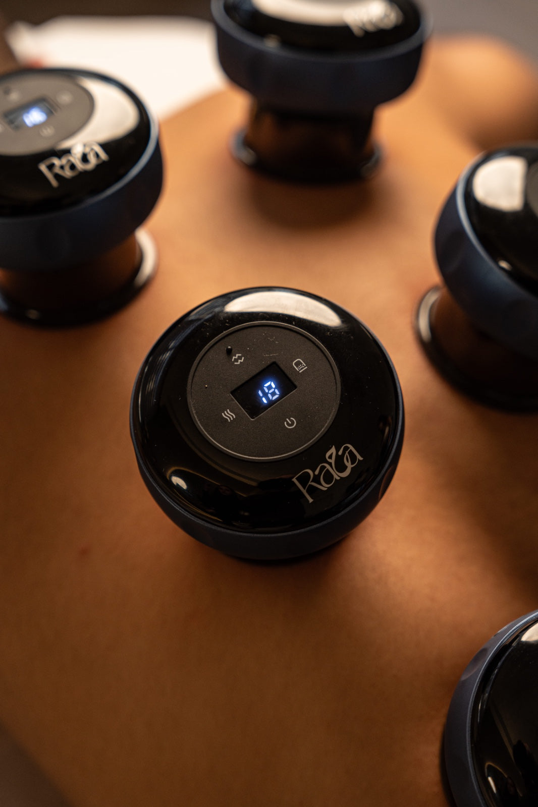 RAHA® brings professional-level cupping massagers to the comfort of your home. We’ve combined our dynamic-suction technology, therapeutic heat, and collagen-boosting red light therapy into one easy-to-use device for a targeted relief and recovery experience.